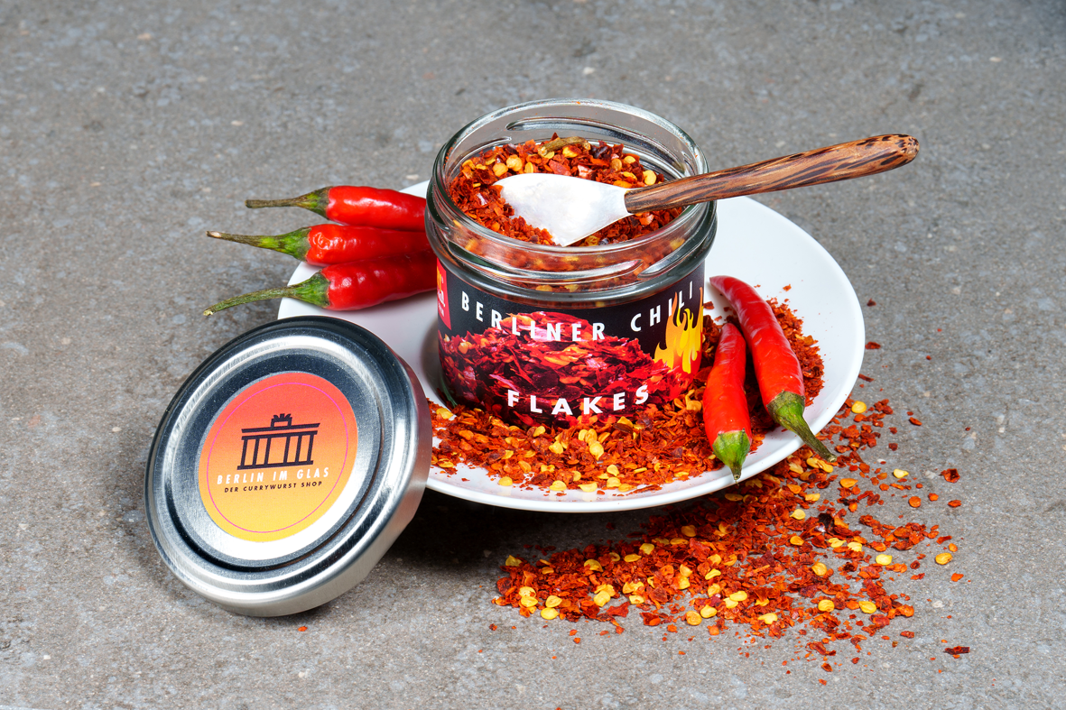Feurige Chiliflocken bringen auch die schärfsten Esser zum Schwitzen. Aber sie sind der perfekte Allrounder in der Küche. Zum Verfeinern oder Nachwürzen, eine Prise reicht! Für alle Scharf-Esser ein Muss! Ob auf deiner Currywurst im Glas oder für das perfekte Chili con Carne – mit diesen Chiliflocken bringst du richtig viel Würze in deine Gerichte.